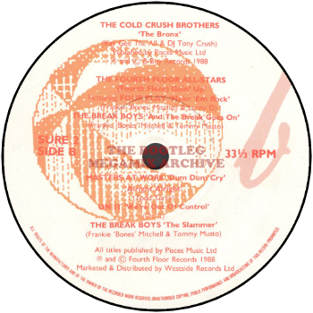 The cassette version of this release contained the first megamix that I heard and it blew me away. I love all of the early Tommy Boy singles and this mix contains five of the best. It was created by one of the U.K.'s first mixing D.J.'s Froggy and was only released on vinyl in single sided promo format.