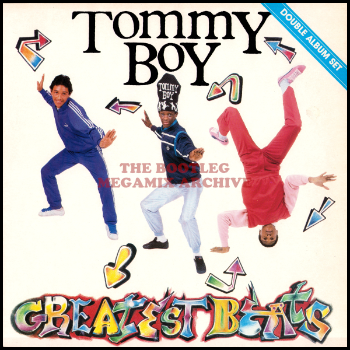 This release contains another megamix of early Tommy Boy tracks and is worth buying for the cover alone as real B-Boys recreate the Tommy Boy logo. This mix was created by a team named 3-D, which consisted of Ralph D'Agostino, Tom Musto and Tommy Sozzi. It was also released as a stand alone 12" single with three different versions of the megamix, details of which can be found here.