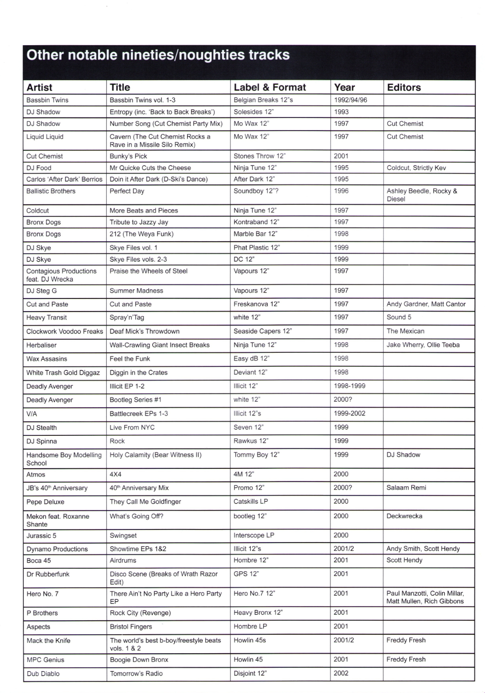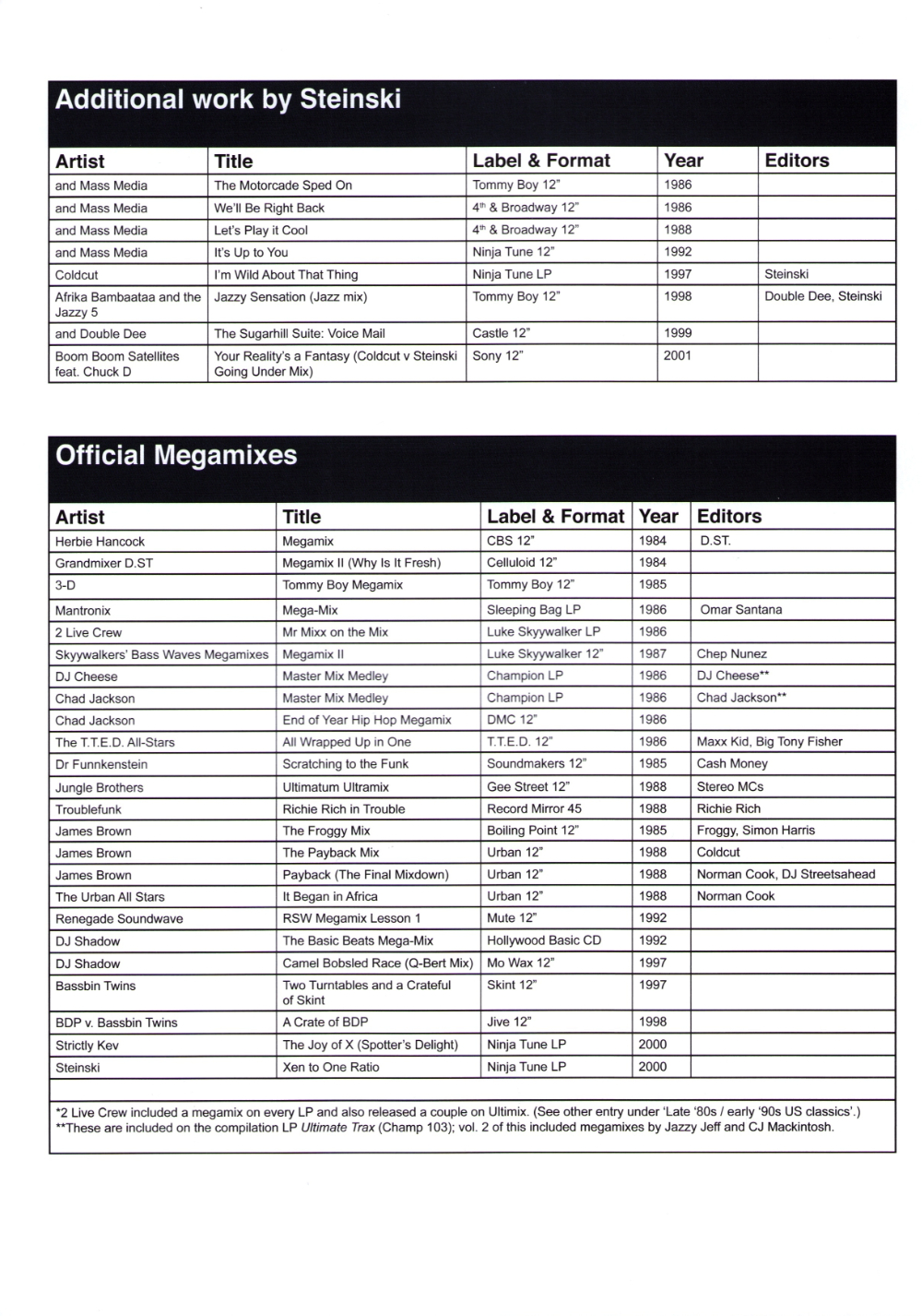 Full List Of Mixes