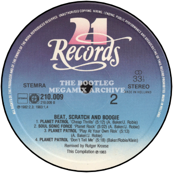 Planet Patrol - Cheap Thrills (1983); Afrika Bambaataa & The Soul Sonic Force - Planet Rock (1982); Planet Patrol - Play At Your Own Risk (1982); Planet Patrol - Don't Tell Me (1983)