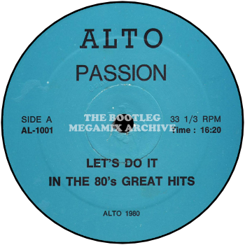 COMMENTS: This mix was originally released on Alto Passion - Let's Do It In The 80's and can also be found on side B of Anjou - Dust Mix, side B of Disco Mix - Disco Mix, side A of Discotheque - The 70's, side B of Manhattan - Bandit II and both sides of Special Disco Mixer - Bits & Pieces 3