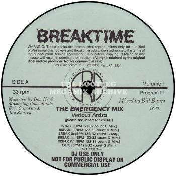 RUNOUT GROOVES: QCA8X339A2 EMERGENCY MIX (Side A) QCA8X339B DK (Side B)