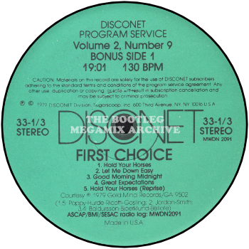 First Choice - Hold Your Horses (1978); First Choice - Let Me Down Easy (1979); First Choice - Good Morning Midnight (1979); First Choice - Great Expectations (1979)