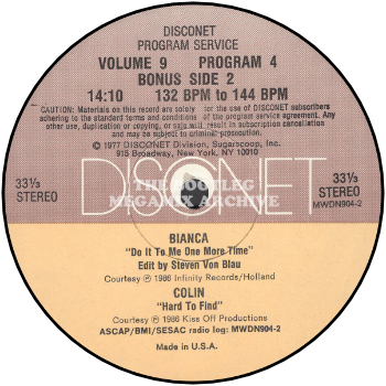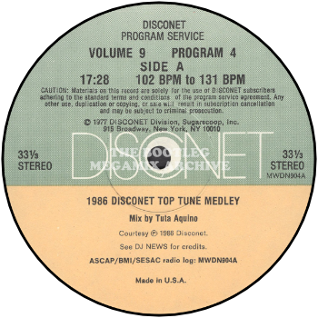 Tuta returns!!! Master tape cutter Tuta Aquino, who wowed you with his Disconet versions of Janet Jackson's "When I Think Of You" and, last month, Kool And The Gang's "Victory", is back. This time it's all the top tunes of 1986, for a spectacular Disconet Top Tune Medley. Working out of his editing studio, Prime Cuts here in New York, Tuta master mixed 20 of 1986's top dance records into a powerhouse medley. With over 400 edits, we feel this is one of the best and most exciting Disconet Top Tune Medlies ever. Thanks Tuta.