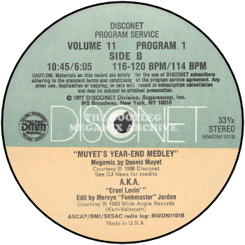 Side B heats up with "Muyet's Year-End Medley," the follow-up to "Muyet's Mid-Year Medley" (Volume 10 Program 10). Your floor will explode as this megamix uncontrollably pounds out ton of 1988's hottest hits.