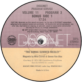 I remember yesterday, oh yes I remember it well. She was the Queen of Disco. Her seductive vocals would make you moan, the futuristic trend-setting Giorgio Moroder productions would make you dance, and of course she was Donna Summer. The Donna Summer Medley is a dancing journey down memory lane. It incorporates twelve of Donna's biggest hits during the heyday of disco. Mike Carroll and Steven Von Blau have created this special megamix especially for Disconet's Valentines Day sweetheart program.