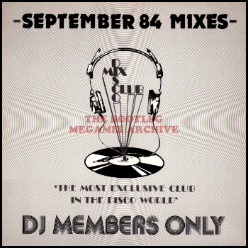 Disco Mix Club’s September mixes are Simon Harris’s excellent cut-up confection based on M ‘Pop Muzik’ (the inspiration for ‘Ghostbusters’?), Alan Coulthard & Mark Clark’s melding of ‘War/Relax’ brilliantly overdubbed with World War ll actualities and much more, Alan’s solo megamixes being a bland Pointer Sisters, predictable Jimmy Jam/Terry Lewis/Hawk Wolinski, and Howard Jones/Nik Kershaw