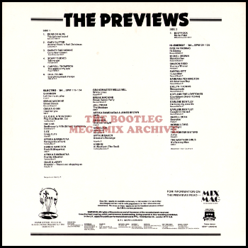 Shannon - Let The Music Play (1983); Break Machine - Street Dance (1983); Chaka Khan - I Feel For You (1984); G.L.O.B.E. & Whiz Kid - Play That Beat Mr. D.J. (1983); V.H.B. - Beethoven's Fifth (Street) Symphony (1984); Grandmixer D. St. featuring Bernard Fowler - Crazy Cuts (1983); Afrika Bambaataa & The Soul Sonic Force - Renegades Of Funk (1983); Herbie Hancock - Rockit (1983); Afrika Bambaataa & The Soul Sonic Force with Shango - Frantic Situation (1984); Ollie & Jerry - Breakin'... There's No Stopping Us (1984); Grandmaster & Melle Mel - White Lines (Don't Don't Do It) (1983); Break Machine - Break Dance Party (1984); Jellybean - The Mexican (1984); Afrika Bambaataa & The Godfather Of Soul James Brown - Unity (1984); Shannon - Give Me Tonight (1984); Newcleus - Jam On It (1984); Arthur Baker - Breaker's Revenge (1984); Hashim - Al-Naafiysh (The Soul) (1983)