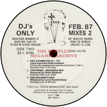 Steinski & Mass Media - We'll Be Right Back (1986); Boogie Down Productions - Word From Our Sponsor (1987); Kraftwerk - Sex Object (1986); Sweet Tee & Jazzy Joyce - It's My Beat (1986); Boogie Boys - Run It (1986); Masters Of Ceremony featuring Don Barron - Sexy (1986); Salt-N-Pepa - My Mike Sounds Nice (1986); K-Rob - I'm A Homeboy (1986); Stetsasonic - 4 Ever My Beat (1986); Heavy D. & The Boyz - Mr. Big Stuff (1986); Kool G. Rap & D.J. Polo - It's A Demo (1986); T La Rock - Back To Burn (Annihilate) (1986); Mantronix - Listen To The Bass Of Get Stupid Fresh Part II (1986); Worse 'Em - Triple M Bass (1986); Mantronix - Electronic Energy Of... (1986); Schoolly-D - Saturday Night (1986)
