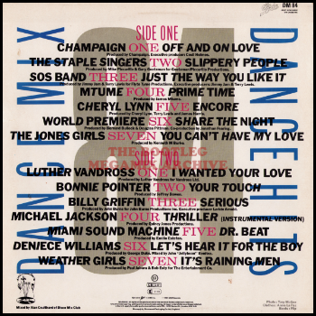 Luther Vandross - I Wanted Your Love (1984); Bonnie Pointer - Your Touch (1984); Billy Griffin - Serious (1983); Michael Jackson - Thriller (1982); Miami Sound Machine - Dr. Beat (1984); Deniece Williams - Let's Hear It For The Boy (1984); Weather Girls - It's Raining Men (1982)