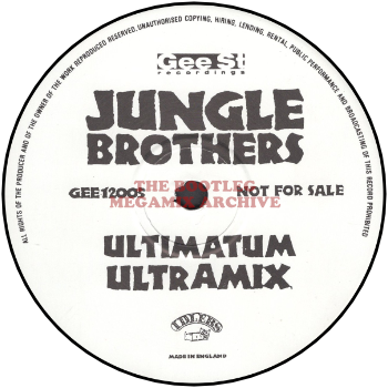 An opportunity arose for us at Gee Street to remix some songs from the Jungle Brothers first LP Straight Out The Jungle. This was in 1988, not too long after I'd recorded Beat Bytes so I applied the same skills and mentality to the task. As Gee Street were releasing the Straight Out The Jungle LP in the UK, we gave The Ultimatum Ultramix away free as a bonus 12" when you bought the LP. We did the same thing for Queen Latifah's LP All Hail The Queen a year later with the Ultimatum Mix of Dance For Me and Princess Of The Posse.