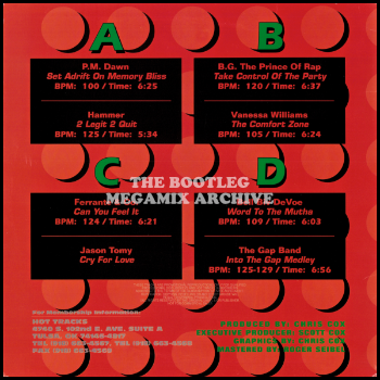 TRACKS I CAN IDENTIFY IN THE MIX - I have only listed the ones that have prolonged elements or have a short sample repeated multiple times: