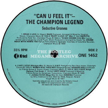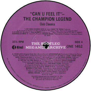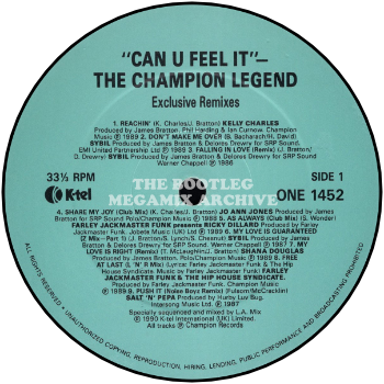 Les Adams and DJ Shem (Streets Ahead) have each neatly megamixed two sides of a double album of Champion released material due soon on K-tel, ‘The Champion Legend — “Can You Feel It?”