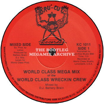 World Class Wreckin' Cru - Juice (1985); World Class Wreckin' Cru - Surgery (1984); World Class Wreckin' Cru - Lay Your Body Down (1988); World Class Wreckin' Cru - He's Bionic (1986); World Class Wreckin' Cru - Mission Possible (1986); World Class Wreckin' Cru - The Fly (1986); World Class Wreckin' Cru - House Calls (1987); World Class Wreckin' Cru - Planet (1985); World Class Wreckin' Cru - Must Be The Music (1987); World Class Wreckin' Cru - Funky Chicken (1988); World Class Wreckin' Cru - Cabbage Patch (1987)