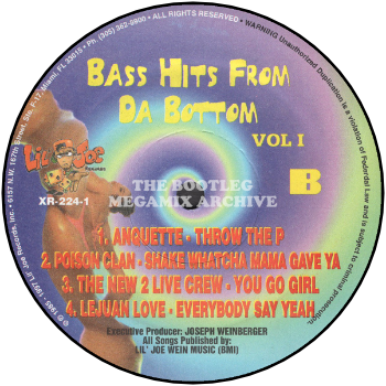 Bust Down - Nasty Bitch (1991); D.J. 'K.J.' & M.C. Kooley 'C' - Sheryl & Donna (1986); Home Team - Pick It Up (1992); Anquette - Throw The P (1986); Poison Clan - Dance All Nite (1990); J.D.C. - Jealous Girls (1986); 2 Live Crew - Get It Girl (1986); Poison Clan - Shake Whatcha' Mama Gave Ya' (1992); Disco Rick & The Wolfpack - Wiggle Wiggle (1992); Le Juan Love - Everybody Say Yeah! (1987)
