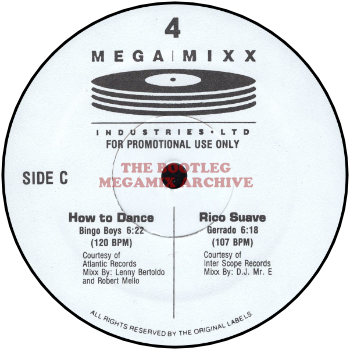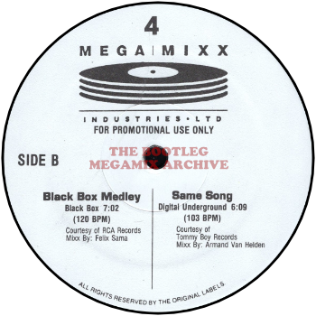 RUNOUT GROOVES: MEGAMIXX104A PME JC EMW #09207 (Side A) MEGAMIXX104B EMW #09207X DMI (Side B) MEGAMIXX104CII EMW #09208 DMI (Side C) MEGAMIXX104DIII DMI EMW #09208X (Side D)
