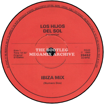 Similarly be aware of a decidedly dodgy label-less Dutch 12in LOS HIJOS DEL SOL presentan ‘Ibiza Mix Numero 2‘/’Souvenir Medley‘, two marathon megamixes one starting with ‘Axel F’/’Fresh’ and the other ‘Instant Replay’. Get the picture?