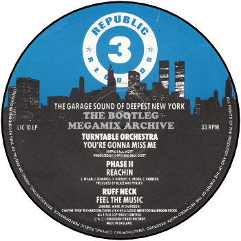 If nothing else kicks the “garage/deep house” trend into touch, this double album of previously released material will! All in long versions, there are the 118¾bpm Philly flavoured soulfully leaping BLAZE ‘Can’t Win For Losing (Kevin Hedge Mix)’, Marshall Jefferson produced 118-118½-116½-116¾-116½bpm sassily cantering KYM MAZELLE ‘I’m A Lover (Manny Lehman Club Mix)’, currently re-imported 118¾bpm moaningly nagged ARNOLD JARVIS ‘Take Some Time Out (Club Mix)’, Colonel Abrams-ish 123¾-124-123⅔bpm jittery pshta pshta-ed JOE CHURCH ‘I Can’t Wait Too Long (NY Club Mix)’, Blaze produced 122bpm gruffly soulful steady pshta pshta-ed EXIT ‘Let’s Work It Out (Performance Mix)’, Serious Intention-ish 0-118¾bpm burbling TOUCH ‘Houselights (Album Mix)’, currently massive 0-116bpm piano nagged jittery hypnotic weaving TURNTABLE ORCHESTRA ‘You’re Gonna Miss Me (Club Mix)’, also huge 0-121bpm fabulous soaringly bounding PHASE II ‘Reachin’ (Brotherhood Mix)’, “strings” sawed 124¾-124⅔bpm jerkily thumping RUFF NECK ‘Feel The Music (Power Mix)’, plus a Manny Lehman compiled bumpily surging ‘Mastermix’ (fluctuating only fractionally around 117½ before finally peaking at 121½bpm), designed to illustrate the WBLS/KISS-fm style of Saturday night dance party New York radio sessions in which the music is strictly garage/disco/Philly.