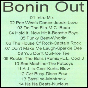 Z-3 M.C.'s - Triple Threat (1985); Joeski Love - Pee-Wee's Dance (1986); Spyder-D - Buckwheat's Beat (1985); Beastie Boys - Hold It Now, Hit It (1986); L.L. Cool J - You'll Rock (1985); Ice-T - Ya Don't Quit (1986); Mantronix - Fresh Is The Word (1985); L.L. Cool J - Rock The Bells [Original Version] (1985); Kurtis Blow - A.J. Scratch (1984); Choice M.C.'s featuring Fresh Gordon - Gordy's Groove (1985); Whodini - Funky Beat (1986)
