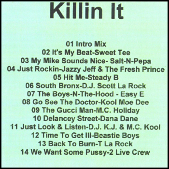 Kool Moe Dee - Go See The Doctor (1986); M.C. Holiday - The Gucci Man (1986); Eric B. & Rakim - My Melody (1986); Dana Dane - Delancey Street (1986); Dana Dane - Nightmares (1985); D.J. K.J. & M.C. Kooley C - Just Look And Listen (1986); Beastie Boys - Time To Get Ill (1986); T La Rock - Back To Burn (Annihilate) (1986); 2 Live Crew - We Want Some Pussy (1986); 2 Live Crew - Throw The D (1986); Anquette - Throw The P (1986)