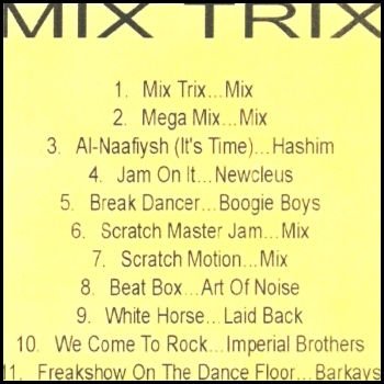 Mix-Trix In Vibe (1984); Grandmixer D. St. - Herbie Hancock Mega-Mix (1984); Hashim - Al-Naafiysh (The Soul) (1983); Newcleus - Jam On It (1984); Boogie Boys - Break Dancer (1984)