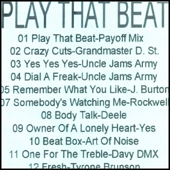 Rockwell - Somebody's Watching Me (1983); Deele - Body Talk (1983); Yes - Owner Of A Lonely Heart (1983); Art Of Noise - Beat Box (1984); Davy D.M.X. - One For The Treble (Fresh) (1984); Tyrone Brunson - Fresh (1984)