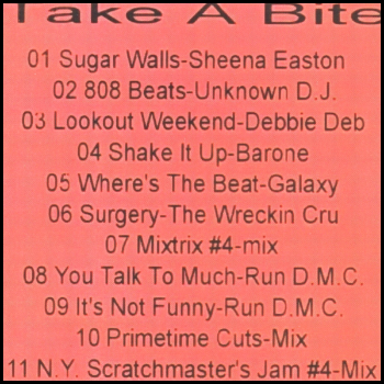 Mix-Trix #4 Roxanne Can You Feel It (1984); Run-D.M.C. - You Talk Too Much (1985); Run-D.M.C. - It’s Not Funny (1985); Prime Kuts (1984); Scratch Master's Jam Nr. 4 The Rap (1984)