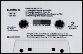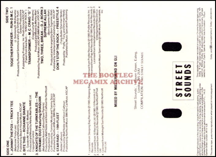 Run-D.M.C. - Together Forever (Krush-Groove 4) (Live At Hollis Park '84) (1985); M.C. Craig 'G' - Transformer (1985); D.J. Born Supreme Allah - Two, Three, Break (Part II - The Sequel) (1985); Freestyle - Don't Stop The Rock (1985)