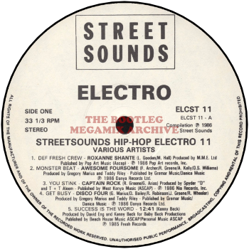 Roxanne Shante featuring Biz Markie - The Def Fresh Crew (1986); Awesome Foursome - Monster Beat (1986); Captain Rock - You Stink (1986); Disco Four - Get Busy (1986); 12:41 - Success Is The Word (1986)