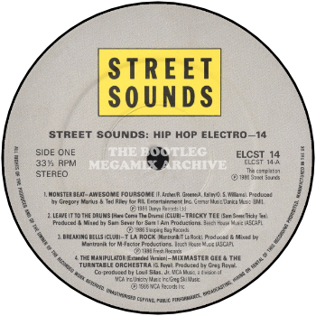 Awesome Foursome - Monster Beat (1986); Tricky Tee - Leave It To The Drums (1986); T La Rock - Breakin' Bells (1986); Mixmaster Gee & The Turntable Orchestra - The Manipulator (1986)