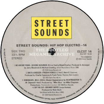 Divine Sounds - Me & My Posse (1986); Fresh Force - She's A Skeezer (1986); M.C. Chill guest apperance by Beatmaster T - Downbeats (Beat Them Down) (1986); Skinny Boys - Rip The Cut (1986)