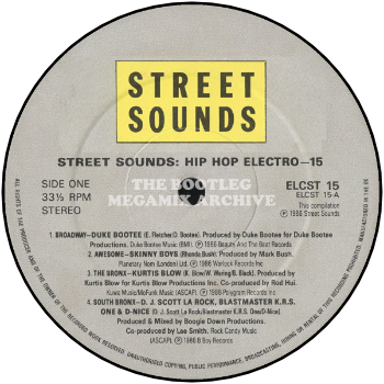 Duke Bootee - Broadway (1986); Skinny Boys - Awesome (1985); Kurtis Blow - The Bronx (1986); Boogie Down Productions - South Bronx (1986)