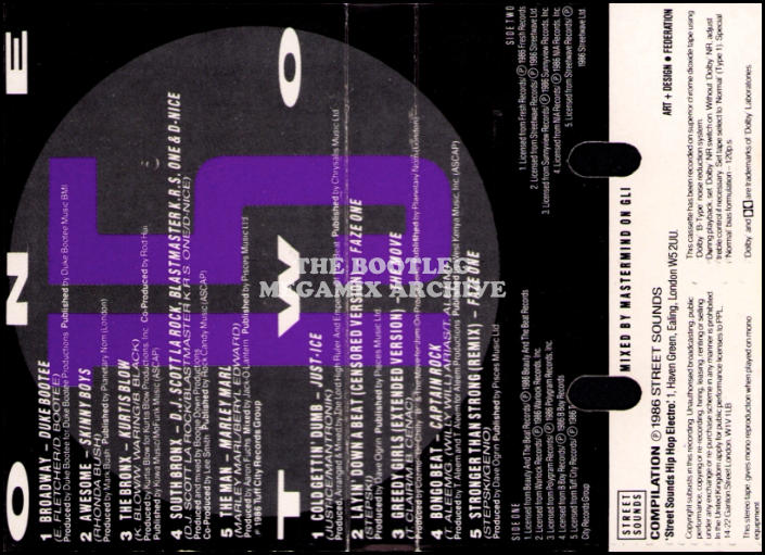 Just-Ice - Cold Gettin' Dumb (1986); Faze One - Layin' Down A Beat (1986); Move - Greedy Girls (1986); Captain Rock - Bongo Beat (1986)