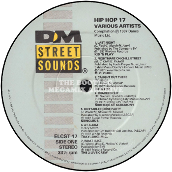 Kid 'N Play - Last Night (1987); M.C. Chill - Nightmare On Chill Street (1987); Roof Top - Caught Out There (1987); Masters Of Ceremony - Cracked Out (1987); Newcleus - Huxtable House Party (1987); Tray-Bag M.C. - At A Jam (1987); 2 Live Crew - What I Like (1985)