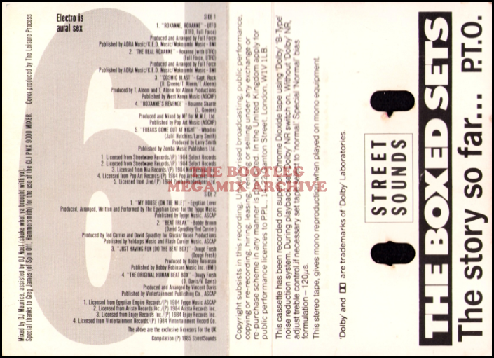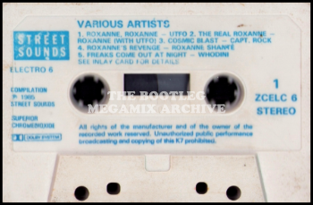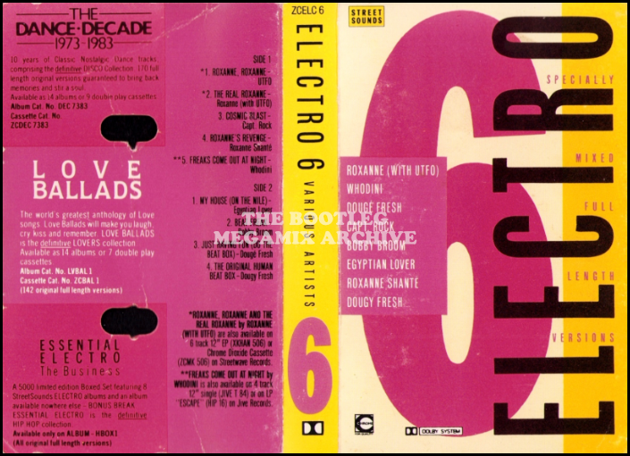 Incidentally on the DJs Maurice & Noel-mixed new ‘Streetsounds Electro 6‘ (Street Sounds ELCST 6), UTFO and ROXANNE are linked by CAPT ROCK ‘Cosmic Blast’ to ROXANNE SHANTÉ ‘Roxanne’s Revenge’ and WHODINI ‘Freaks’, Side 2’s fast EGYPTIAN LOVER ‘My House’ followed by BOBBY BROOM ‘Beat Freak’ and usefully both DOUGE FRESH and DOUGY FRESH human beat box records, making a strong set.
