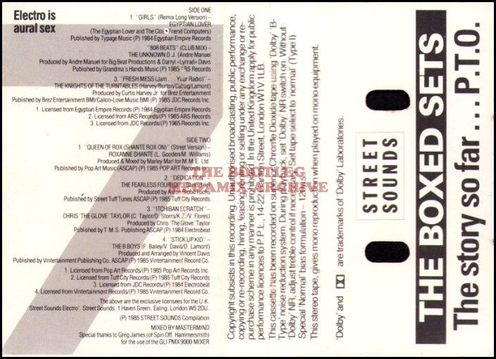 Roxanne Shante - Queen Of Rox (Shante Rox On) (1985); Fearless Four - Dedication (1985); Chris 'The Glove' Taylor, Dave Storrs, Karlos Z. & Victor Flores - Itchiban Scratch (1985); B Boys - Stick Up Kid (1985)