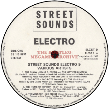 Doug E. Fresh & The Get Fresh Crew - The Show (1985); Bad Boys featuring K Love - Bad Boys (1985); Grandmixer D. St. - The Home Of Hip Hop (1985); Kid Frost - Terminator (1985)