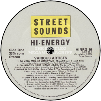 Miquel Brown - So Many Men, So Little Time (1983); Kofi & The Lovetones - Countdown (Here I Come) (1984); Laura Pallas & The Reputations - Skiing In The Snow (1983); Simone - It's Too Late (1983); Shirley Lewis - Didn't Say A Word (1984)