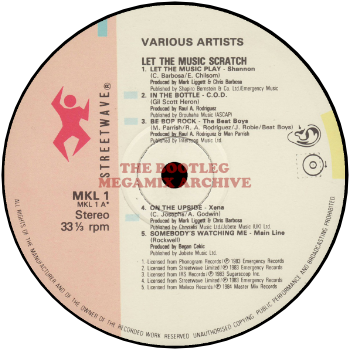 Shannon - Let The Music Play (1983); C.O.D. - In The Bottle (1983); Beat Boys - Be Bop Rock (1983); Xena - On The Upside (1983); Main Line - Somebody's Watching Me (1984)