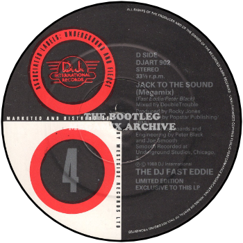 UK copies of The DJ Fast Eddie’s LP (DJ International Records DJART 902, via Westside Records), as warned when reviewed on import, include a Double Trouble created ‘Jack To The Sound (Megamix)’ of its tracks, 0-122-126⅓-0bpm, which is strange, as nothing on the album runs quite as slow or fast as those outer parameters!