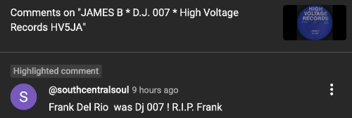 The source of Frank Del Rio being 'D.J. 007' is from the below comment on my YouTube channel.