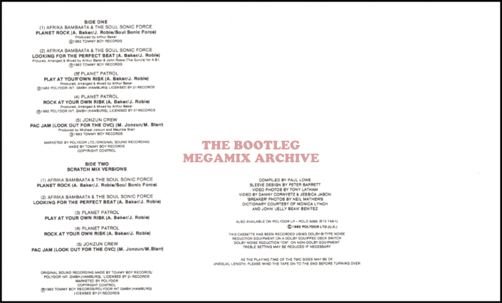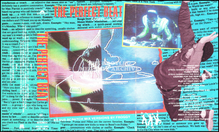 21 Records’ ‘The Perfect Beat’ electrophonic compilation LP of Soulsonic Patrol Crew stuff in its cassette form has a bonus scratch mix by Froggy