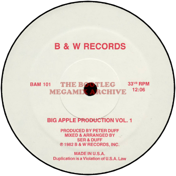 COMMENTS: This is the original release of the infamous BIG APPLE PRODUCTION VOL. 1 bootleg mix. It was bootlegged two further times as Big Apple - Big Apple Mix and Big Apple Mix