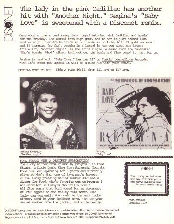 Aretha Franklin - Who's Zoomin' Who (1985); Alisha - Too Turned On (1985); Skipworth & Turner - Thinking About Your Love (1985); Pointer Sisters - Dare Me (1985); Shannon - Do You Wanna Get Away (1985); Lisa Lisa & Cult Jam with Full Force - I Wonder If I Take You Home (1984); Steve Arrington - Dancin' In The Key Of Life (1985); Colonel Abrams - Trapped (1985); Madonna - Into The Groove (1985); Expose - Point Of No Return (1985); Miami Sound Machine - Conga (1985); Phyllis Nelson - I Like You (1985); Dead Or Alive - Lover Come Back To Me (1985); Dead Or Alive - You Spin Me Round (Like A Record) (1984); Aretha Franklin - Freeway Of Love (1985); New Order - The Perfect Kiss (1985); Angie Gold - Eat You Up (1985); Go West - We Close Our Eyes (1985); Patti LaBelle - New Attitude (1984)