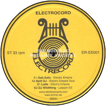 COMMENTS: Released in March 2003, this record was the result of a competition by the Electro Empire web site to create a track with the vocal 'Electro Empire' in it. The four winning tracks were released on this 12". Only 500 copies of this were pressed