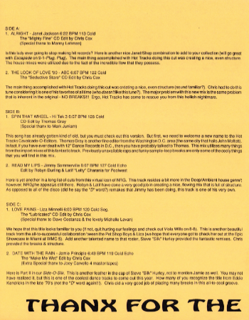TRACKS I CAN IDENTIFY IN THE MIX - I have only listed the ones that have prolonged elements or have a short sample repeated multiple times: