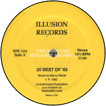 Daryl Hall & John Oates - I Can't Go For That (No Can Do) (1981); Mike Anthony - Why Can't We Live Together (1982); Third World - Try Jah Love (1982); Stevie Wonder - Do I Do (1982); Imagination - Just An Illusion (1982); Carl Carlton - Baby I Need Your Loving (1982); Cheri - Murphy's Law (1982); Angela Clemmons - Give Me Just A Little More Time (1982); Queen - Body Language (1982); Dazz Band - Let It Whip (1982); Trio - Da Da Da (1982); Steve Miller Band - Abracadabra (1982); Earth, Wind & Fire - Let's Groove (1981); C.J. & Co. - Devil's Gun (1977); Aneka - Japanese Boy (1981); Flirts - Passion (1982); Human League - Don't You Want Me (1981); Evelyn King - Love Come Down (1982); Kool & The Gang - Steppin' Out (1981); Gino Soccio - It's Alright (1982); Paul Parker - Right On Target (1982); Yazoo - Situation (1982); Gazebo - Masterpiece (1982); Loverde - Die Hard Lover (1982); Patrick Cowley featuring Sylvester - Do Ya Wanna Funk (1982); Lime - Babe, We're Gonna Love Tonite (1982)