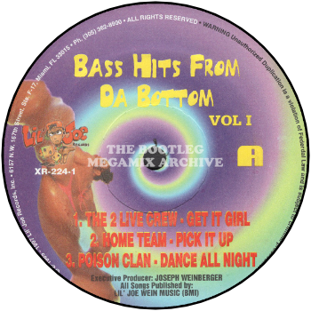 Bust Down - Nasty Bitch (1991); D.J. 'K.J.' & M.C. Kooley 'C' - Sheryl & Donna (1986); Home Team - Pick It Up (1992); Anquette - Throw The P (1986); Poison Clan - Dance All Nite (1990); J.D.C. - Jealous Girls (1986); 2 Live Crew - Get It Girl (1986); Poison Clan - Shake Whatcha' Mama Gave Ya' (1992); Disco Rick & The Wolfpack - Wiggle Wiggle (1992); Le Juan Love - Everybody Say Yeah! (1987)