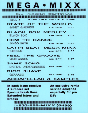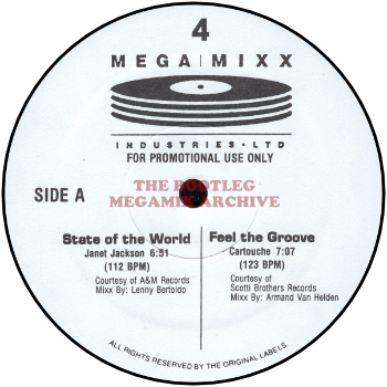 RUNOUT GROOVES: MEGAMIXX104A PME JC EMW #09207 (Side A) MEGAMIXX104B EMW #09207X DMI (Side B) MEGAMIXX104CII EMW #09208 DMI (Side C) MEGAMIXX104DIII DMI EMW #09208X (Side D)