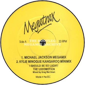 COMMENTS: The side A label states that the MICHAEL JACKSON MEGAMIX is before the KYLIE MINOGUE KANGAROO MINIMIX, but the KYLIE MINOGUE KANGAROO MINIMIX is in fact first and this is reflected in the sequencing below